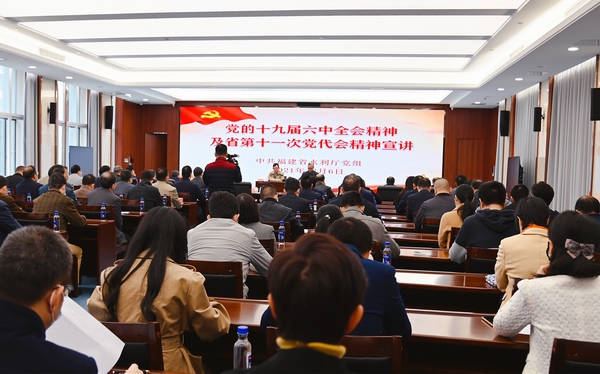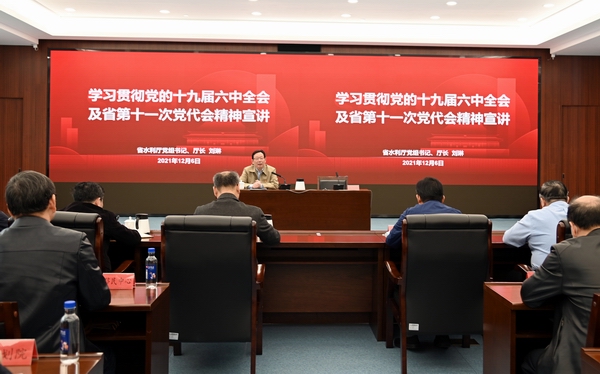 12月6日,省水利厅党组召开全厅干部职工大会,厅党组书记、厅长刘琳带头宣讲党的十九届六中全会精神,并对学习贯彻省第十一次党代会精神进行再传达再部署。