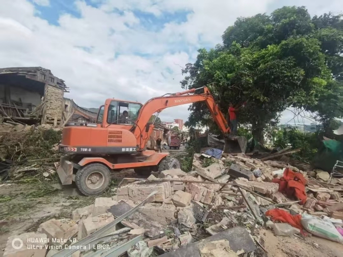 省新镇河长办联合镇执法中队对南金村檀溪沿岸违章搭建的鸡鸭舍开展集中拆除行动