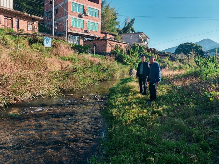 锦斗镇“百姓河长”吴金池到锦斗溪开展巡河,现场监督河道治理管护工作