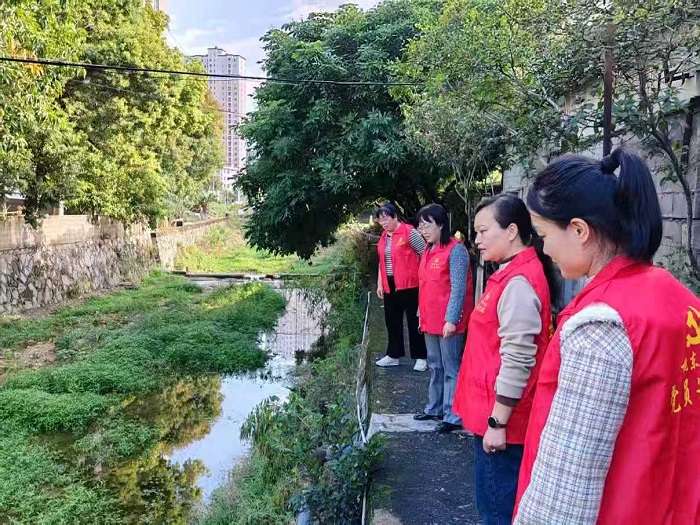 桃城镇河长办组织巾帼志愿者开展河道巡查,现场发现问题并提出意见建议