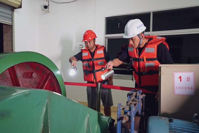 龙岩水利青年技术人员检查黄岗水库闸门启闭设备