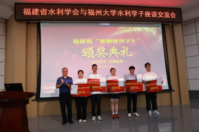 10月9日下午,福建省水利学会丘汀萌理事长与水利厅相关处室专家赴福州大学土木工程学院,与水利学子开展座谈交流。丘汀萌为获得2024-2025学年“水利奖学金”的优秀学生颁奖,并勉励学子“好好学习,天天向上”,投身国家水利事业中去,为行业发展注入青春力量。