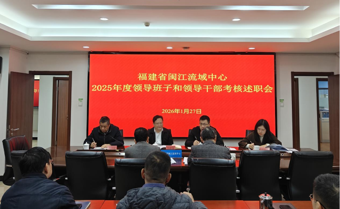 2026年1月27日,省闽江流域中心召开2025年度领导班子和领导干部考核述职大会,省水利厅党组成员、副厅长张麒蛰和厅人事处、机关党委、运管处等有关负责同志到会指导,中心全体干部职工参加会议。