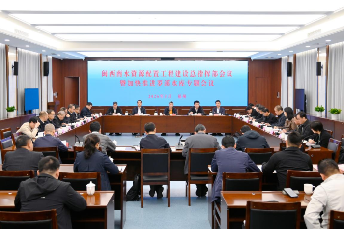 3月27日,省水利厅党组书记、闽西南水资源配置工程建设总指挥部副总指挥陈水树组织召开闽西南水资源配置工程建设总指挥部会议暨加快推进罗溪水库专题会议,研究推进闽西南水资源配置工程前期和建设有关工作。省政府副秘书长李钊,省水利厅厅长叶敏、副厅长张麒蛰,省水投集团副董事长、总经理吴健明,漳州市副市长陈仁朝,华电福建公司党委委员、总会计师安百明出席会议。