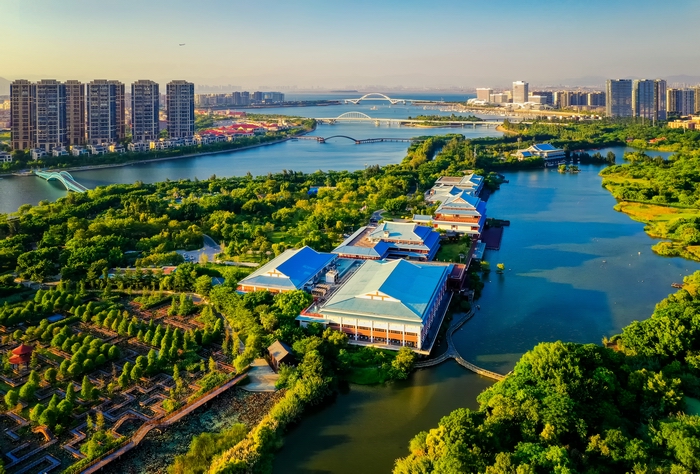 夕阳下的五缘湾湿地公园